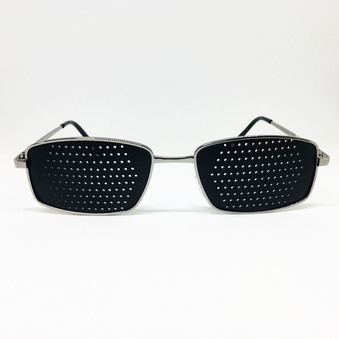 Очки-тренажёры. Оправа — металл, линза — пластик, перфорационная.